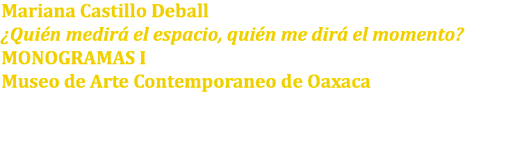 Mariana Castillo Deball ¿Quién medirá el espacio, quién me dirá el momento? MONOGRAMAS I